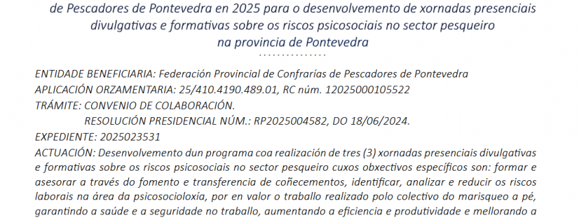 NOVAS PRENSA AXUDAS DEPUTACIÓN PONTEVEDRA CONFRARÍAS PESCADORES E FEDERACIÓN PROVINCIAL 2025